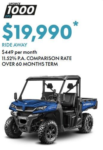 CFMOTO ’s toughest UTV, the UFORCE 1000 EPS is built on a platform that has completely revolutionised the CFMOTO UTV range. The UFORCE 1000 takes UTVs to the next level and, even more importantly at a price that’s simply too good to refuse.